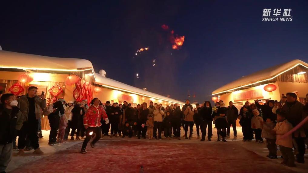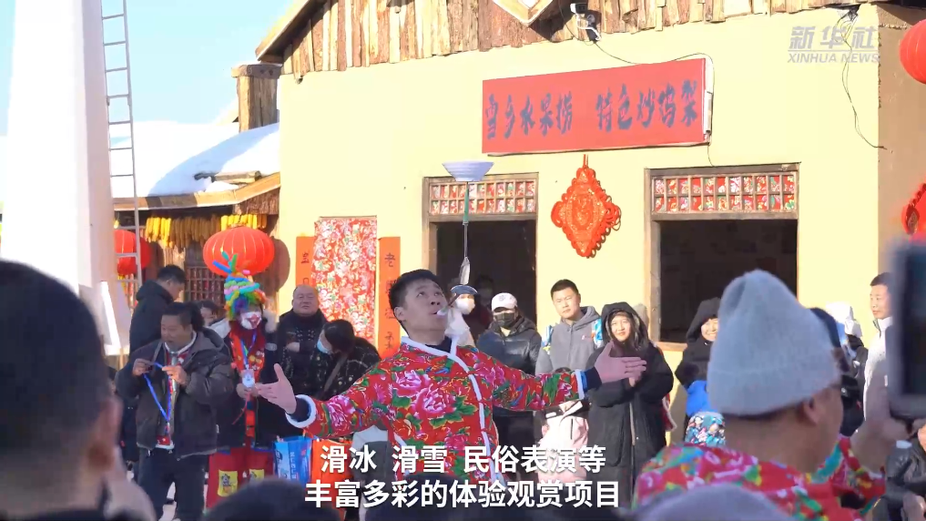 春节期间,河北省遵化市团瓢庄镇山里各庄村的雪乡景区冬景如画,滑冰、滑雪、民俗表演等丰富多彩的体验观赏项目,吸引大批游客前来游玩“打卡”。