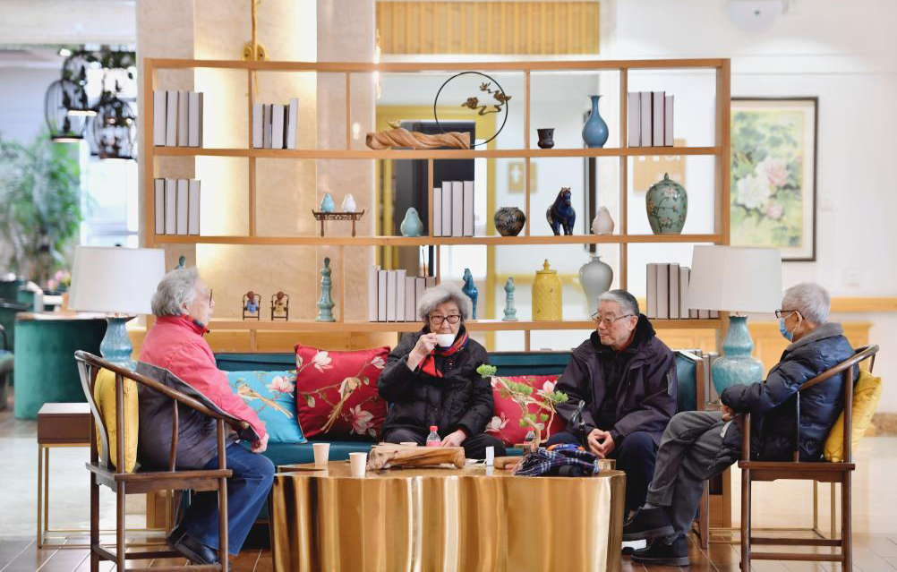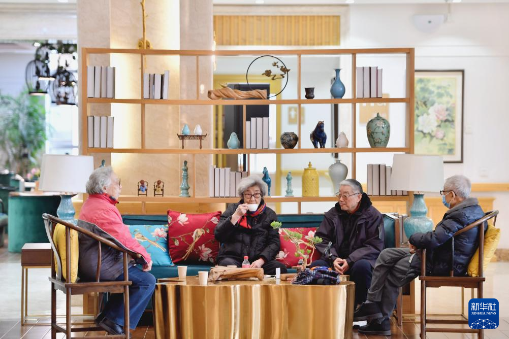 2月28日,老年人在香河县大爱书院养老中心活动室休息。目前,该中心有600余名老人入住,其中约90%的老人来自北京。