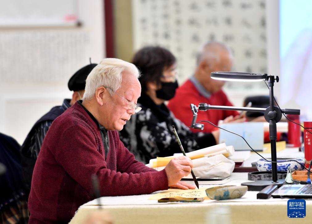 2月28日,老年人在香河县大爱书院养老中心活动室练习书法。目前,该中心有600余名老人入住,其中约90%的老人来自北京。