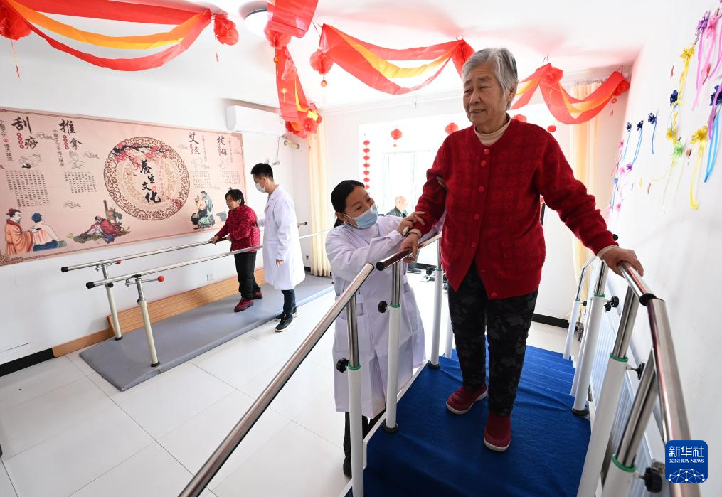 2月29日,在香河县安平镇运河新村医养中心,老年人在进行康复训练。