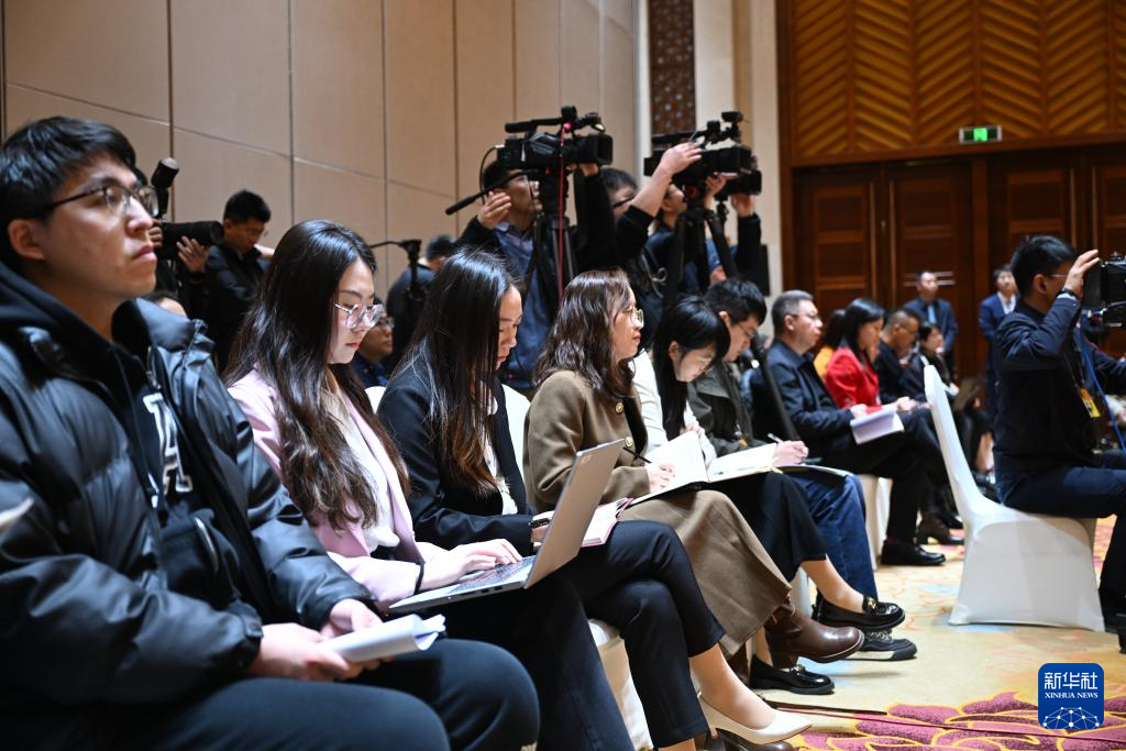 3月6日,十四届全国人大二次会议河北代表团举行开放团组会议。这是记者在会议现场采访。