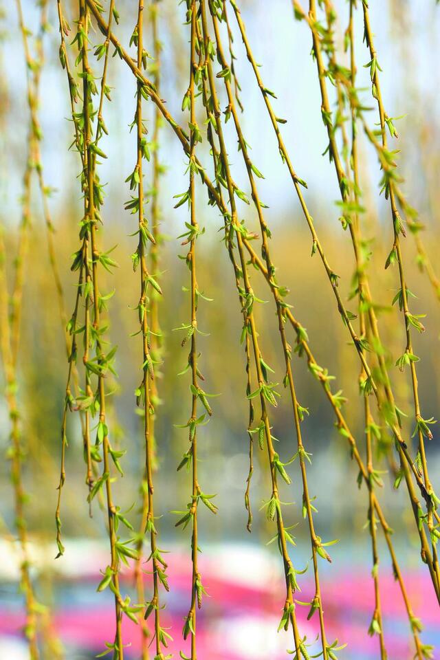 柳树吐出新绿。