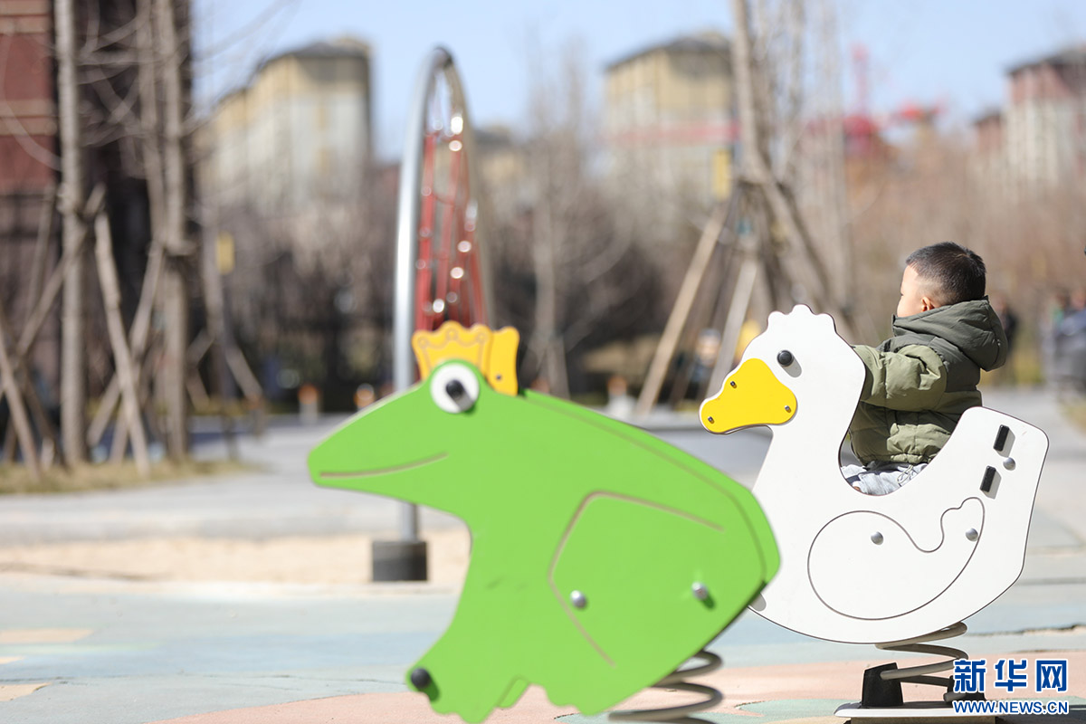 在雄安新区南文营社区礼贤花园小区,一名孩童在玩耍。新华网 王立鹏 摄