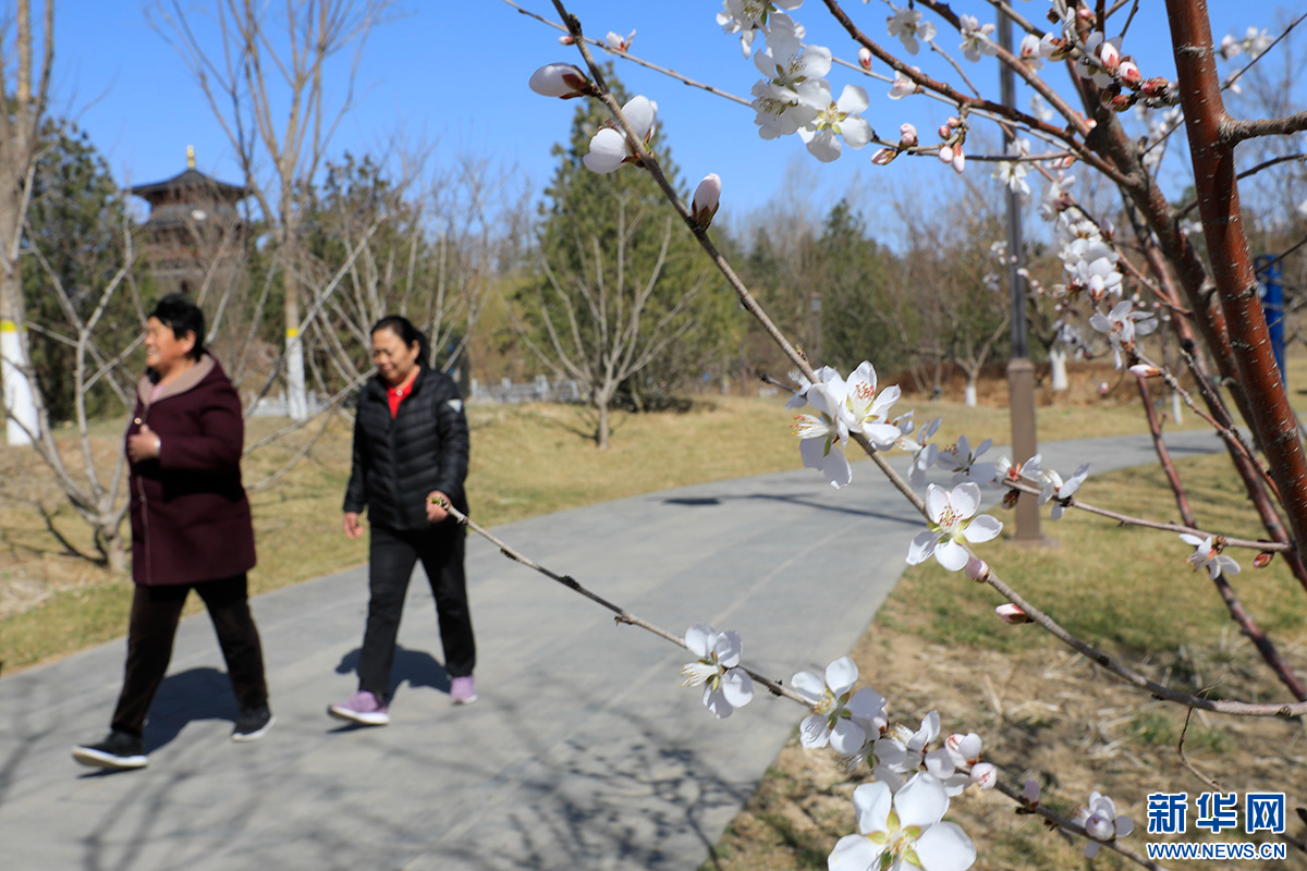 游客在悦容公园游玩,感受春天的气息。新华网 毛鹤然 摄