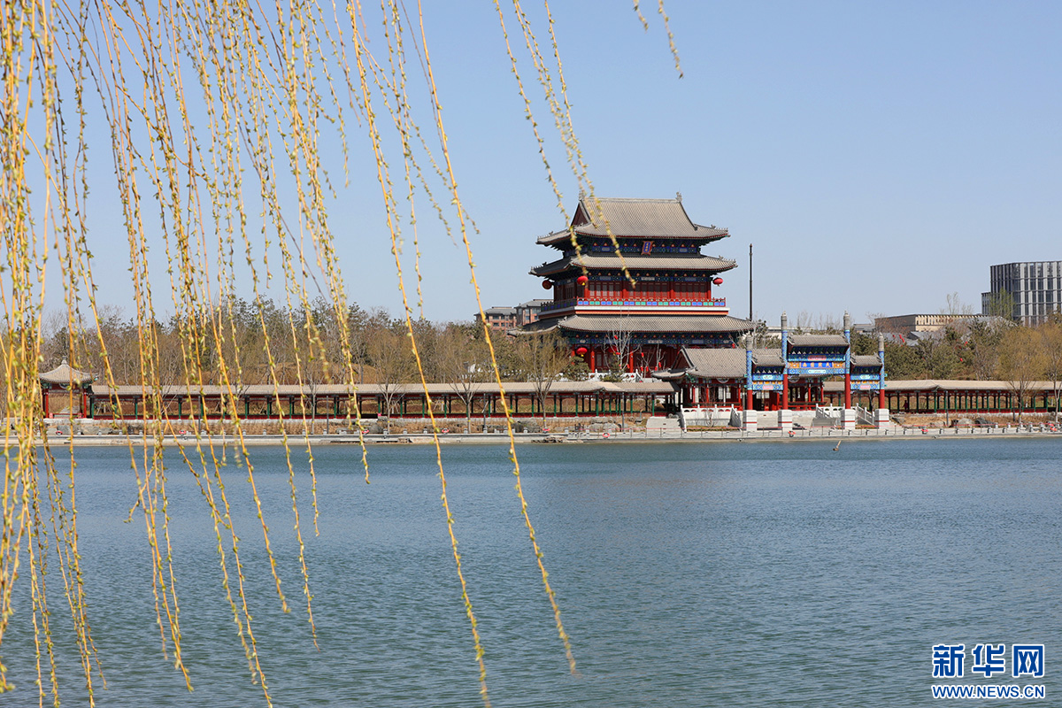 雄安新区金湖公园垂柳长出新叶,在春风中摇曳生姿。新华网 王立鹏 摄