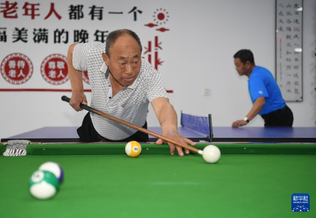 2023年4月10日,老年人在雄安新区容西第一养老驿站打台球。新华社记者 朱旭东 摄