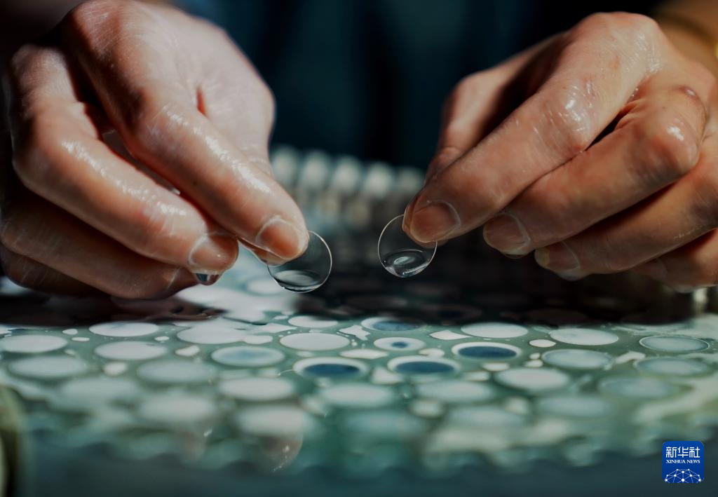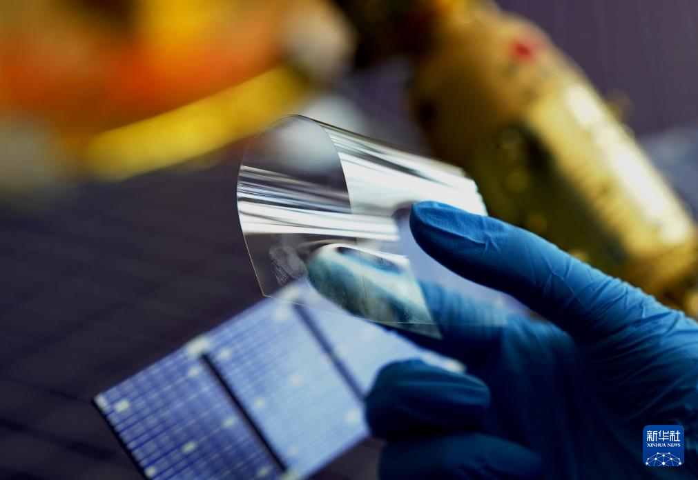 4月12日,河北省秦皇岛经济技术开发区一家特种玻璃企业的工人在展示一款用于航天领域的玻璃产品。