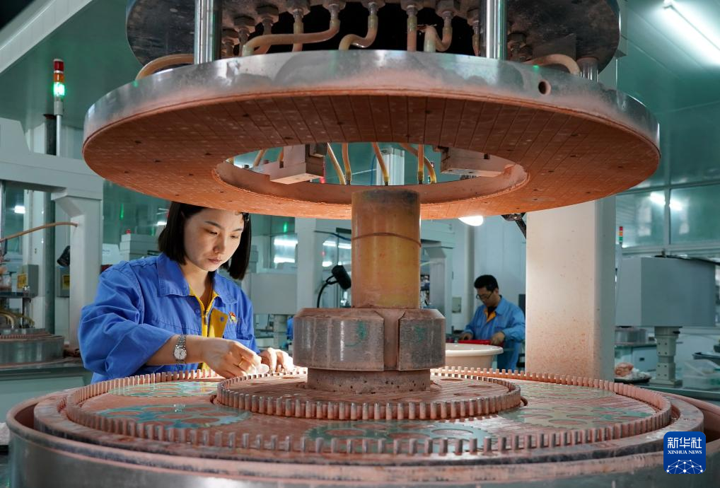 4月12日,工人在河北省秦皇岛经济技术开发区一家特种玻璃企业的生产车间工作。