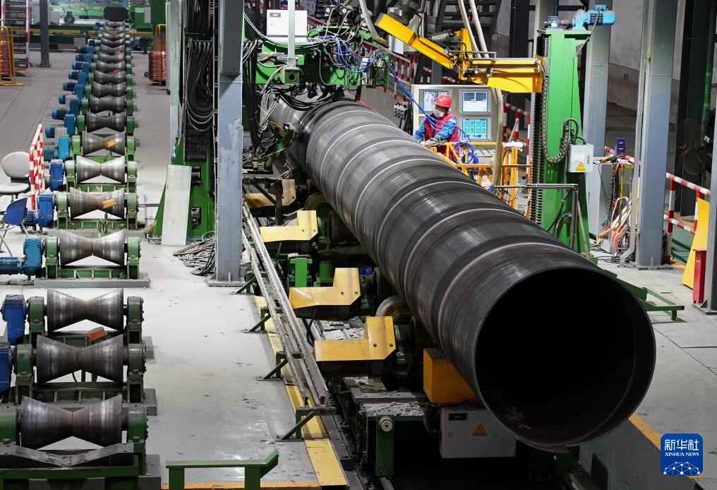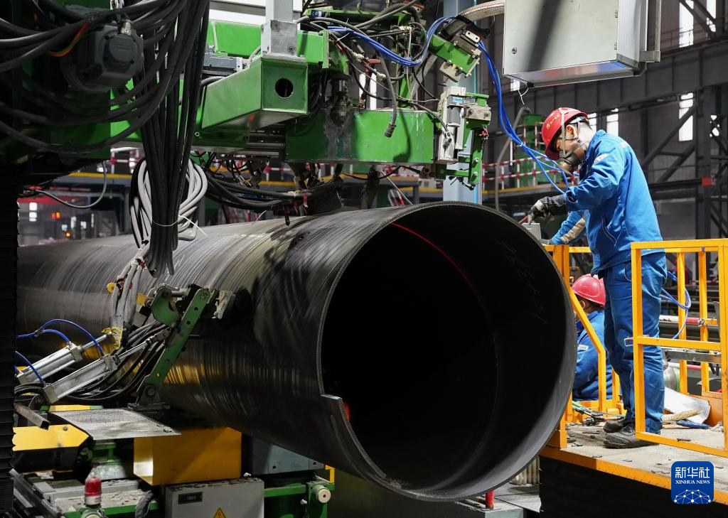 4月12日,工人在河北省秦皇岛经济技术开发区一家钢管企业的生产车间工作。