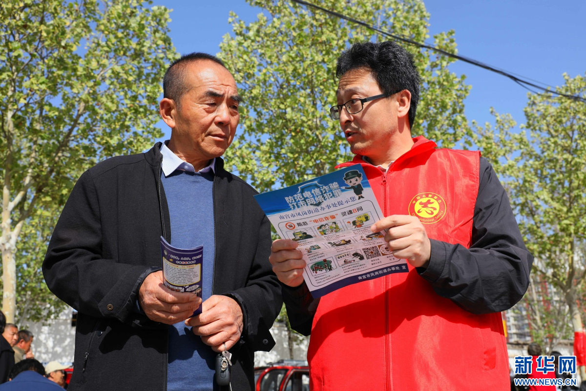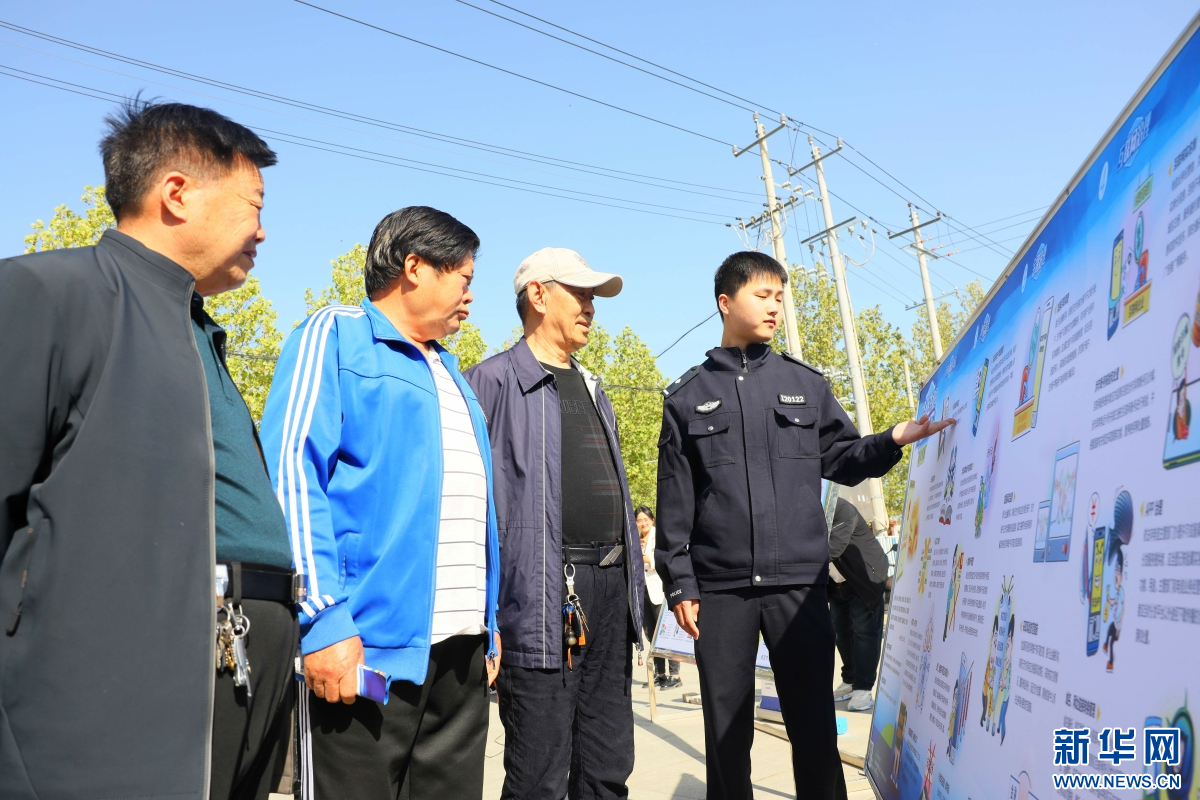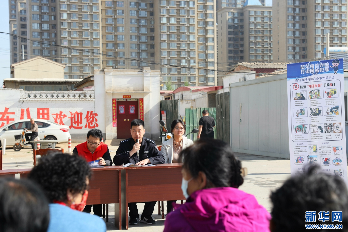 南宫市凤岗街道办事处联合辖区派出所为社区居民讲解反诈知识。新华网发 田优 摄