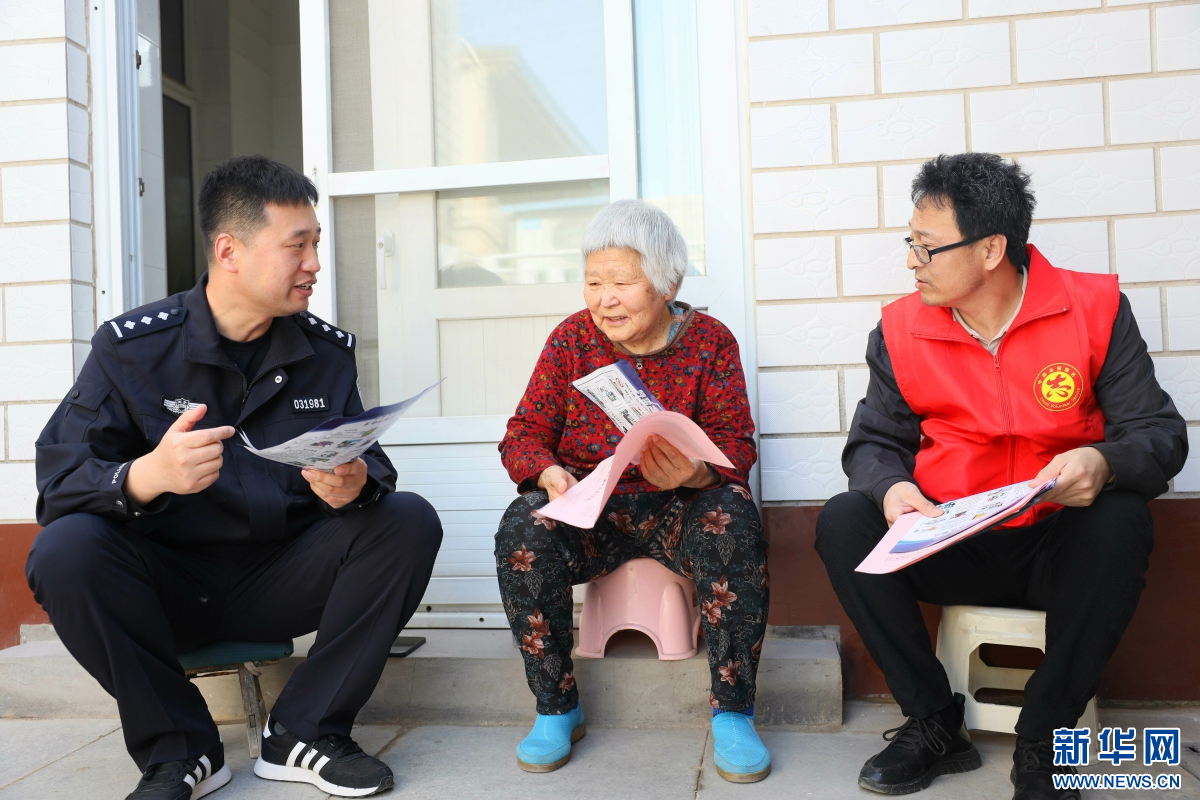 民警和社区志愿者走进居民家中进行反诈宣传。新华网发 田优 摄