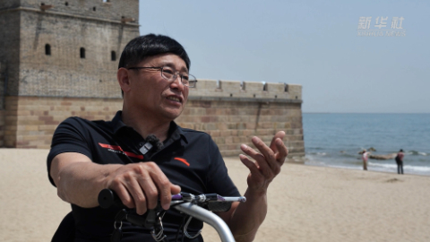 在第三十四次全国助残日前夕,在400名志愿者帮助下,参加第八届“圆肢残人登长城之梦”公益活动的200名肢残人士登上了位于河北省秦皇岛市的山海关老龙头长城。