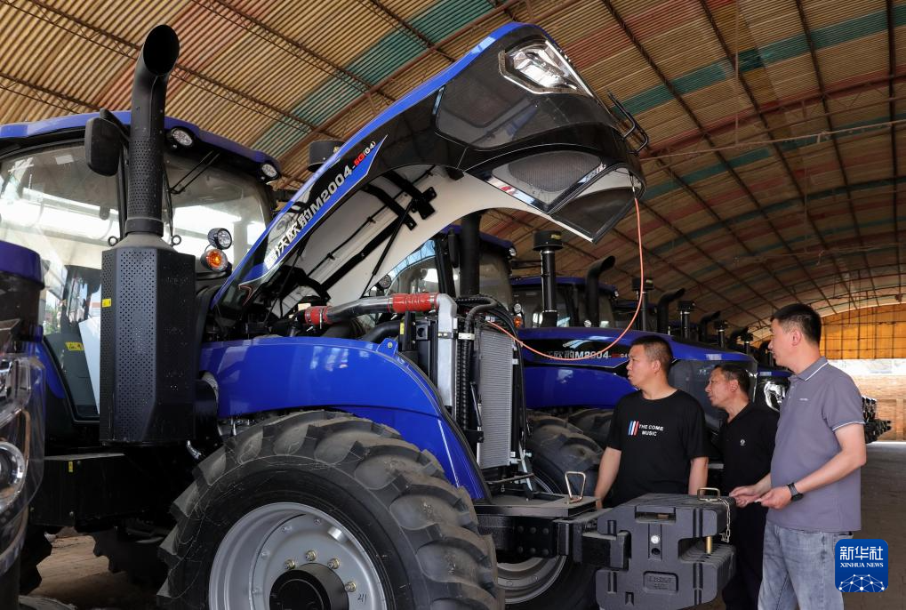 5月28日,在河北省晋州市一家农机销售公司,顾客选购农用拖拉机。