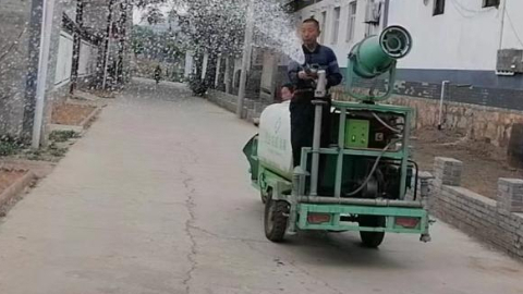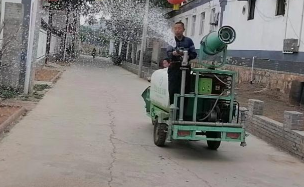 河北唐县齐家佐镇葛公村工作人员进行洒水作业。张屹松 摄