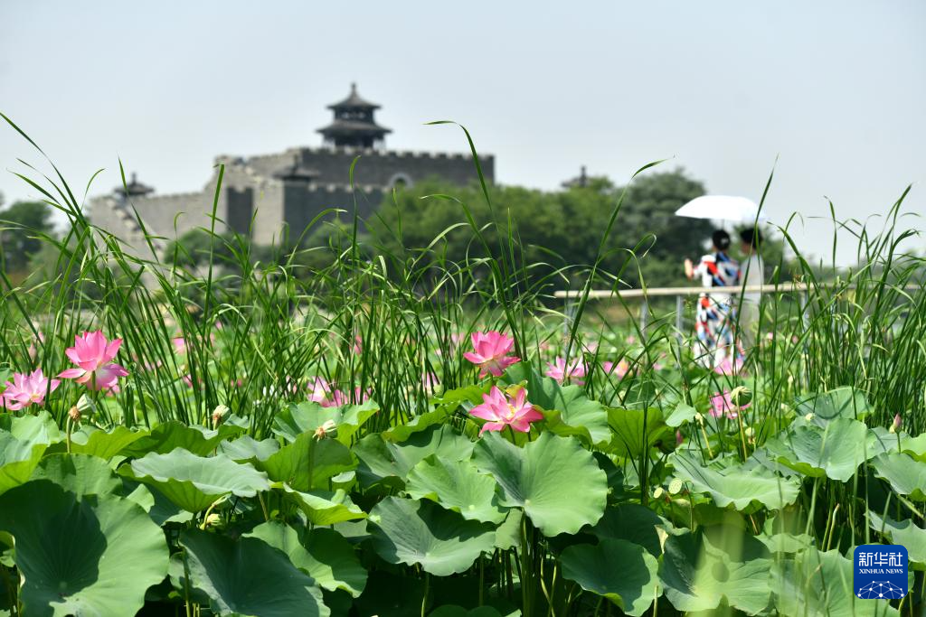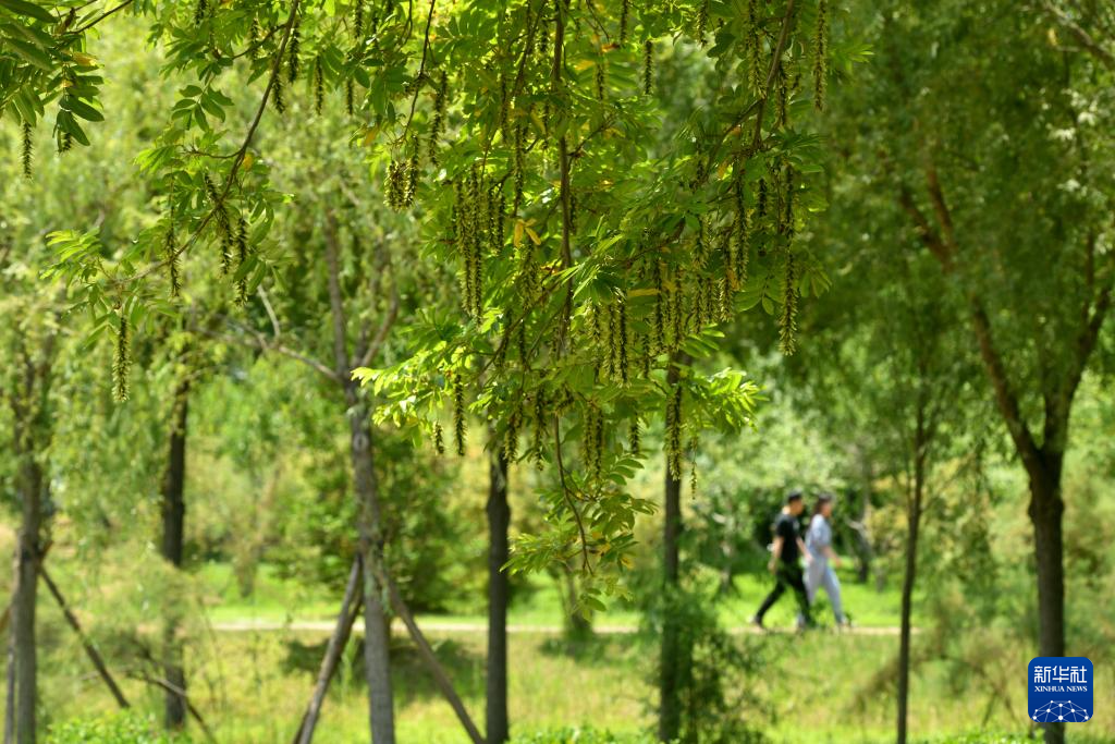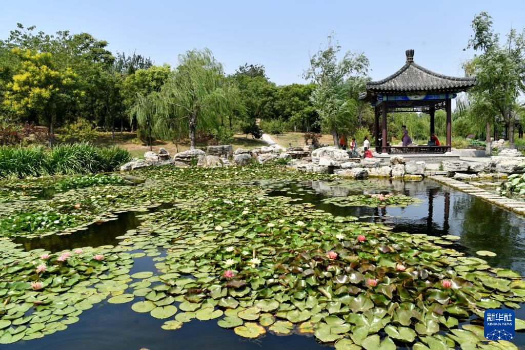 6月28日,游客在河北省河间市古洋河公园内游览。