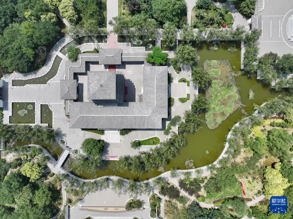 河北省河间市诗经公园景色(6月28日摄,无人机照片)。