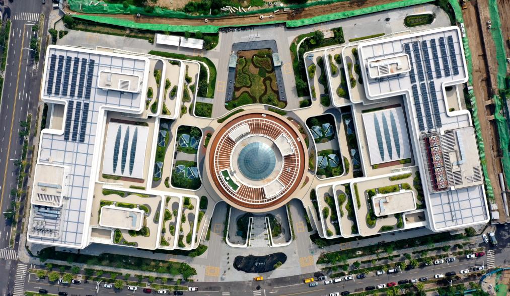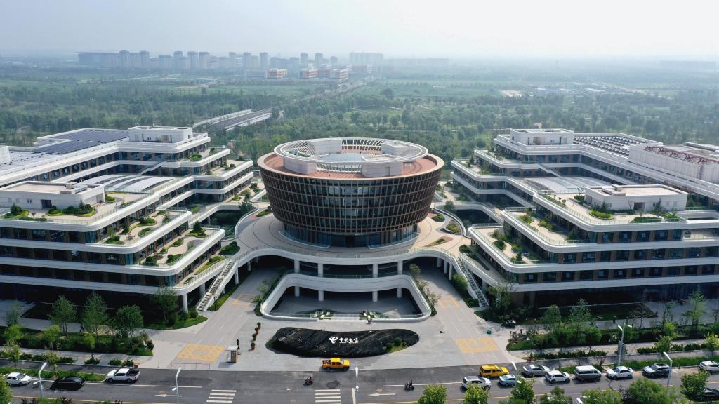 这是位于雄安新区启动区内的中国电信智慧城市产业园(8月8日摄,无人机照片)。目前中国电信智慧城市产业园(一阶段)已正式投入运营。