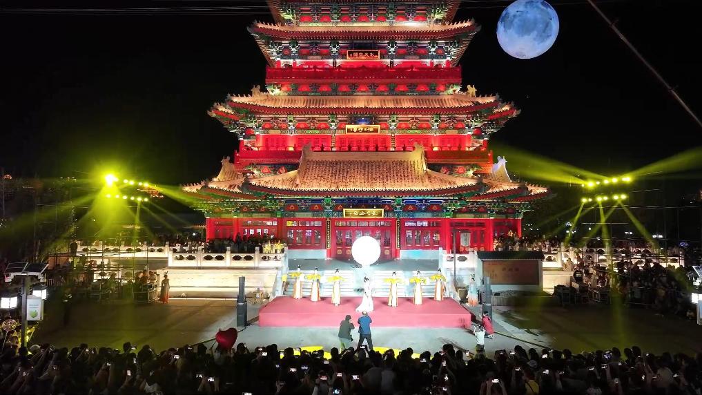 伴随礼乐响起,热闹的人群安静了下来,只见身着华服的“嫦娥仙子”登上舞台,时而翩翩起舞,时而飞向“月亮”。真人秀与明月交相辉映,在灯光音乐交替下嫦娥奔月的故事缓缓讲述开来,赢得游客阵阵掌声。