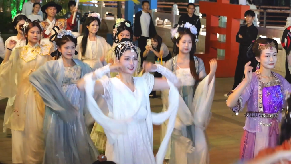 嫦娥奔月表演秀、古装巡游、“对酒当歌”音乐会……中秋佳节期间,河北沧州大运河畔的南川老街灯火璀璨,街上游人如织。人们漫步于大运河畔,逛古街、观演出、赏汉服……沉浸式体验中秋佳节的浪漫与诗意,仿佛穿越时光,梦回南川。