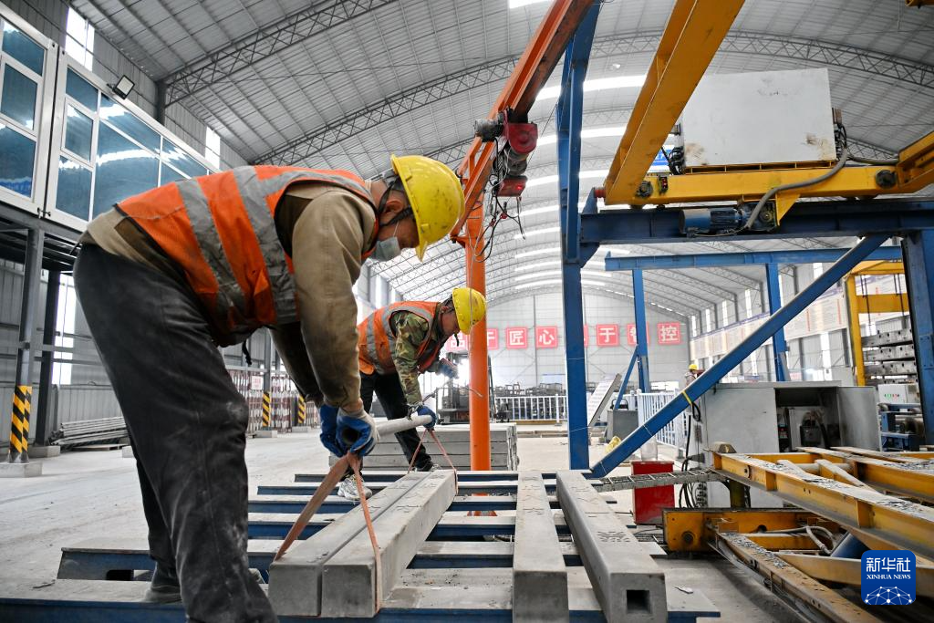 11月19日,中铁十一局集团工人在位于河北省南宫市的雄商高铁站前六标段混凝土构配件智能预制中心内工作。