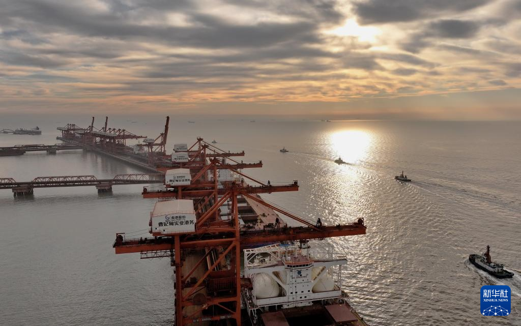 12月16日拍摄的唐山港曹妃甸港区矿石码头(无人机照片)。