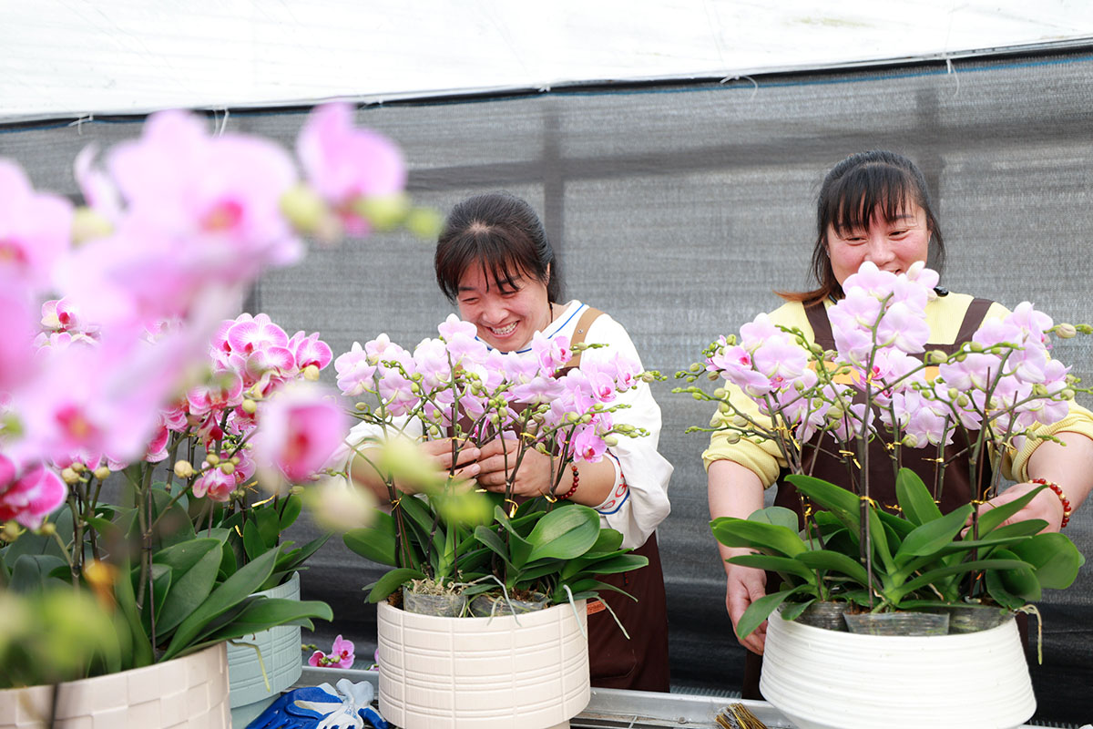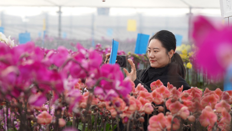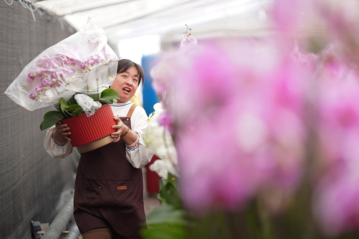 新年将至,在河北省邢台市内丘县一处农业生态园的温室大棚内,40多个品种、5万多株蝴蝶兰竞相开放、争奇斗艳,花农们忙着管护、组盆、包装,供应节日市场。(刘继东 内丘县融媒体中心供稿)