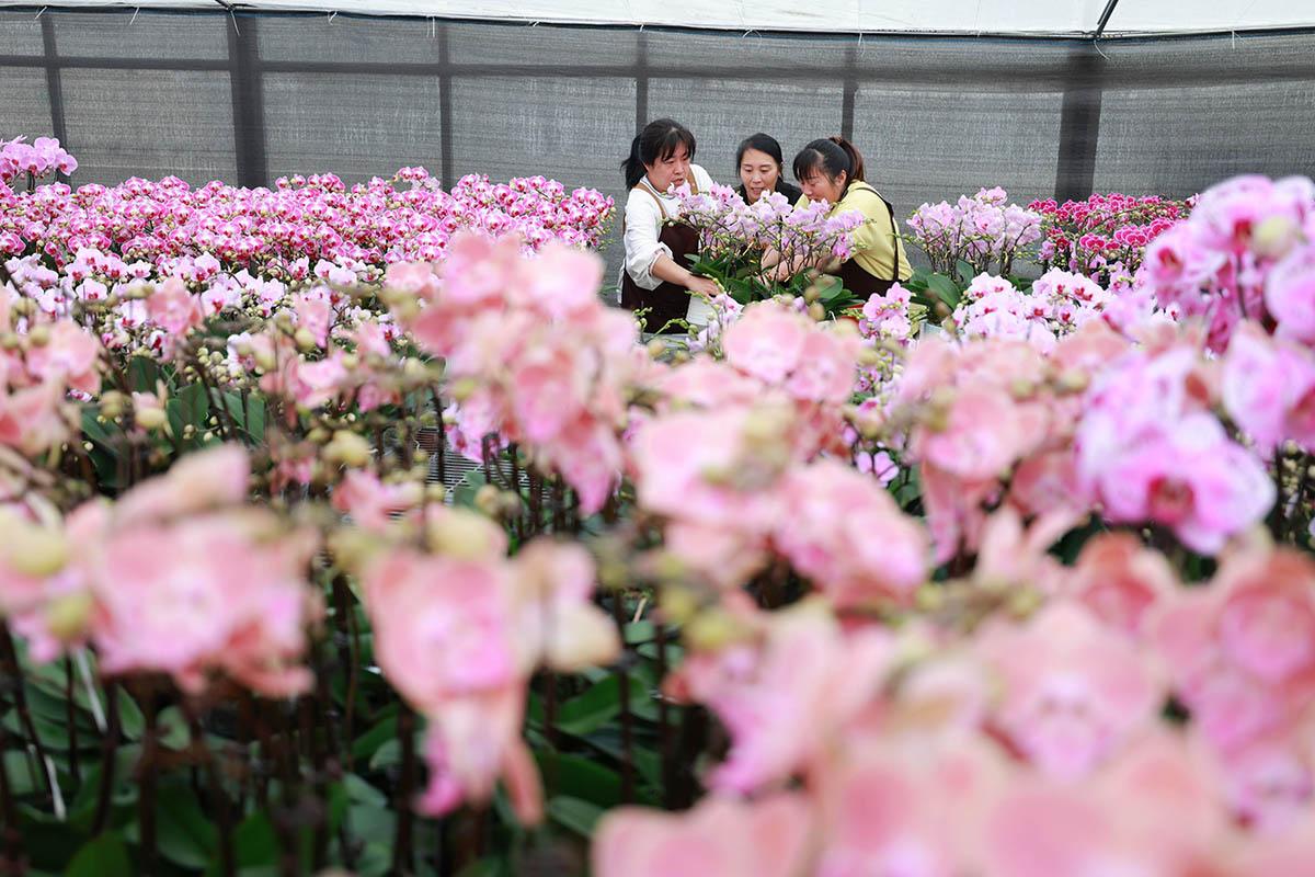 12月25日,花农在温室大棚里管护蝴蝶兰。刘继东 摄