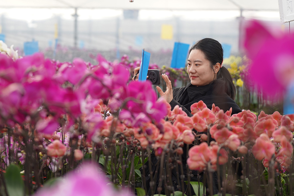 12月25日,市民在拍摄蝴蝶兰。刘继东 摄