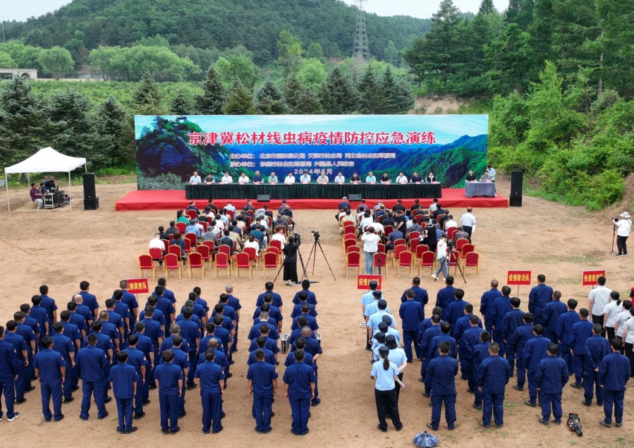 为提高林业有害生物防治人员的业务能力和技术水平,三地通过举办技术培训班、联席会议培训、现场指导培训等多种形式,开展各类技术培训20余次,培训业务骨干500多人;组织京津冀第二届林业有害生物防治员职业技能竞赛,进一步提高了人员防治能力,推动三地人才队伍建设,为护航京津冀生物安全提供了技术支撑;继续实施《京冀林业有害生物防控区域合作项目》,落实北京支援500万元项目防控物资,涉及监测设备2511台、防治器械273台、药剂44吨;落实北京对口支援张、承两地防控能力提升项目资金1069万元,北京密云区支持滦平、兴隆、承德3县药剂6吨;开展联防联治演练,在承德市举行京津冀松材线虫病疫情防控应急演练,在天津市组织2024年林业有害生物灾害防控应急演练等,有效提升了三地松材线虫病、美国白蛾防控应急能力,锻炼了应急防控队伍;完成雄安新区松材线虫病等重大林业有害生物能力提升项目建设,总投资1093万元,进一步提升了雄安新区有害生物整体防控能力。