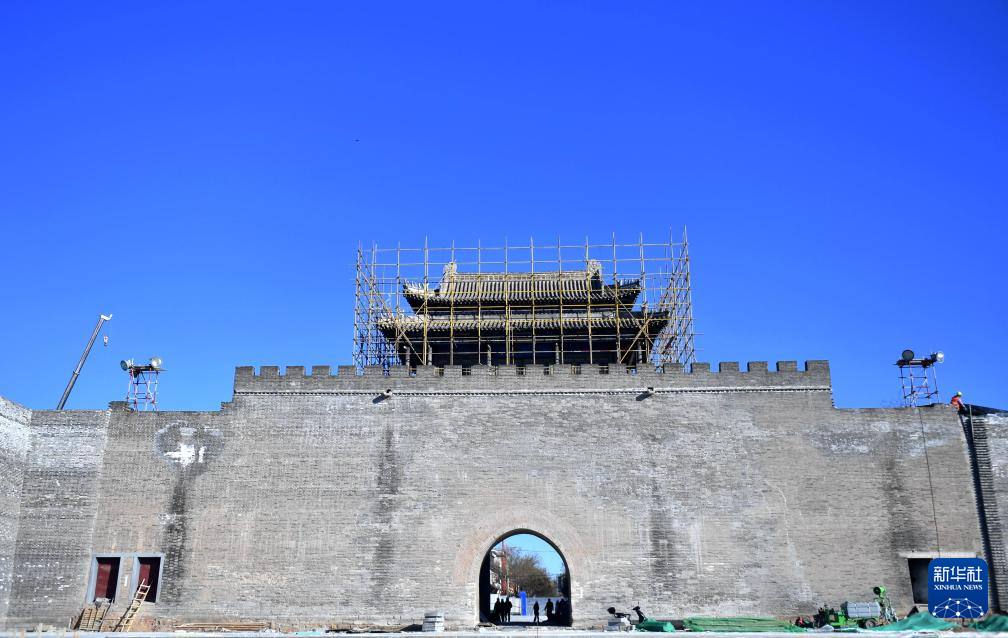 这是1月8日拍摄的正在修缮中的定州南城门。