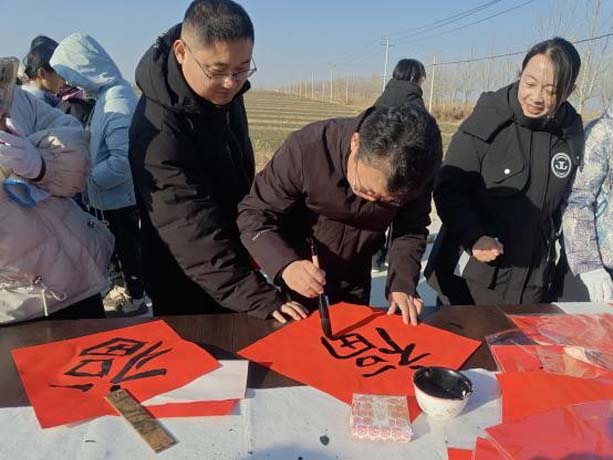 为弘扬和传承中华优秀传统文化,营造喜庆祥和的春节氛围,近日,新河县仁让里乡新时代文明实践所联合新河县书法协会、县消防救援大队举办“新春送福到万家,联墨飘香满乡情”文艺迎春送春联福字活动。活动中,书法家挥毫泼墨书写了60余副春联、160余个福字,为辖区群众送上新春祝福,为仁让里乡增添浓郁年味。