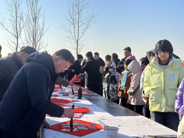 村民们一边欣赏文艺表演,一边观摩书法家创作春联、福字。仁让里乡新时代文明实践所的志愿者走进村民家中,为出行不便的村民送祝福、送春联、拍新春照。此外,新河县消防救援大队的消防员还为村民讲解了消防安全常识。(新河县仁让里乡人民政府供稿)