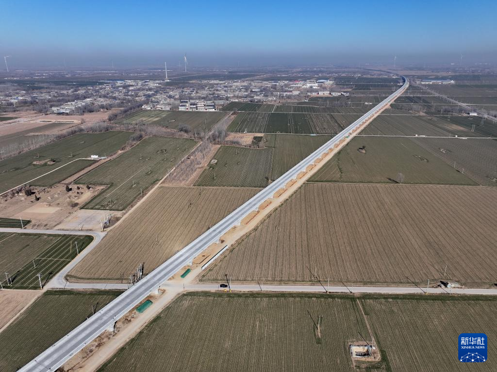 1月16日拍摄的雄商高铁枣强特大桥(无人机照片)。