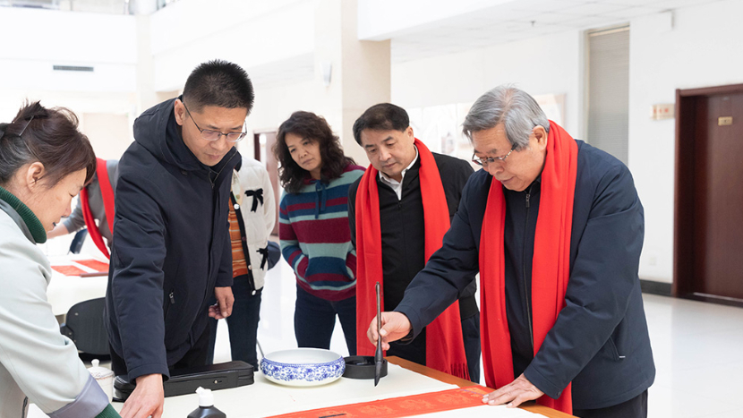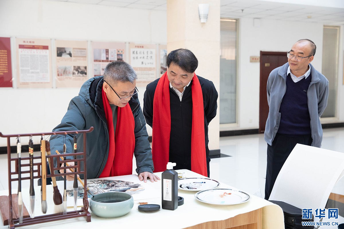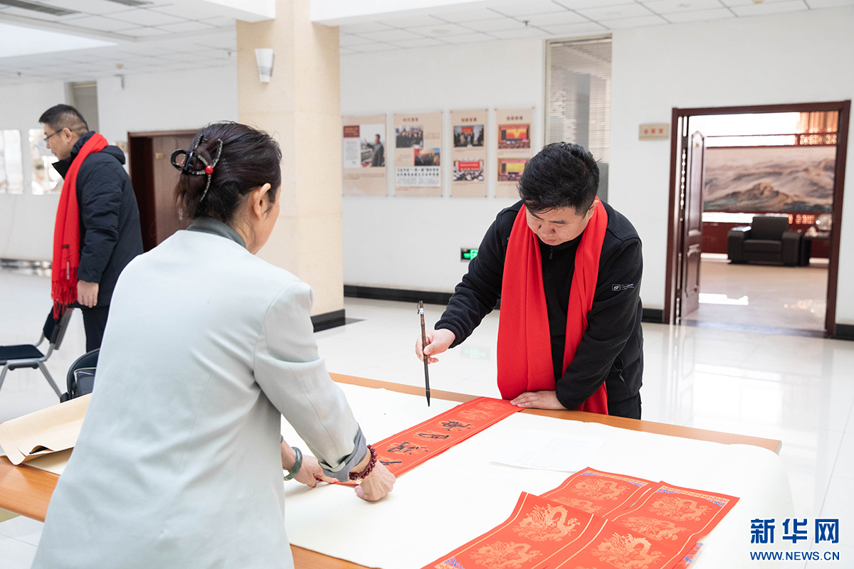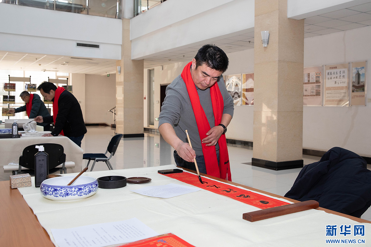 新华网石家庄1月17日电 1月17日上午,在新春佳节即将来临之际,河北省文联、石家庄市文联组织多位书法家、画家走进新闻单位,开展写春联、赠画作、送祝福活动。