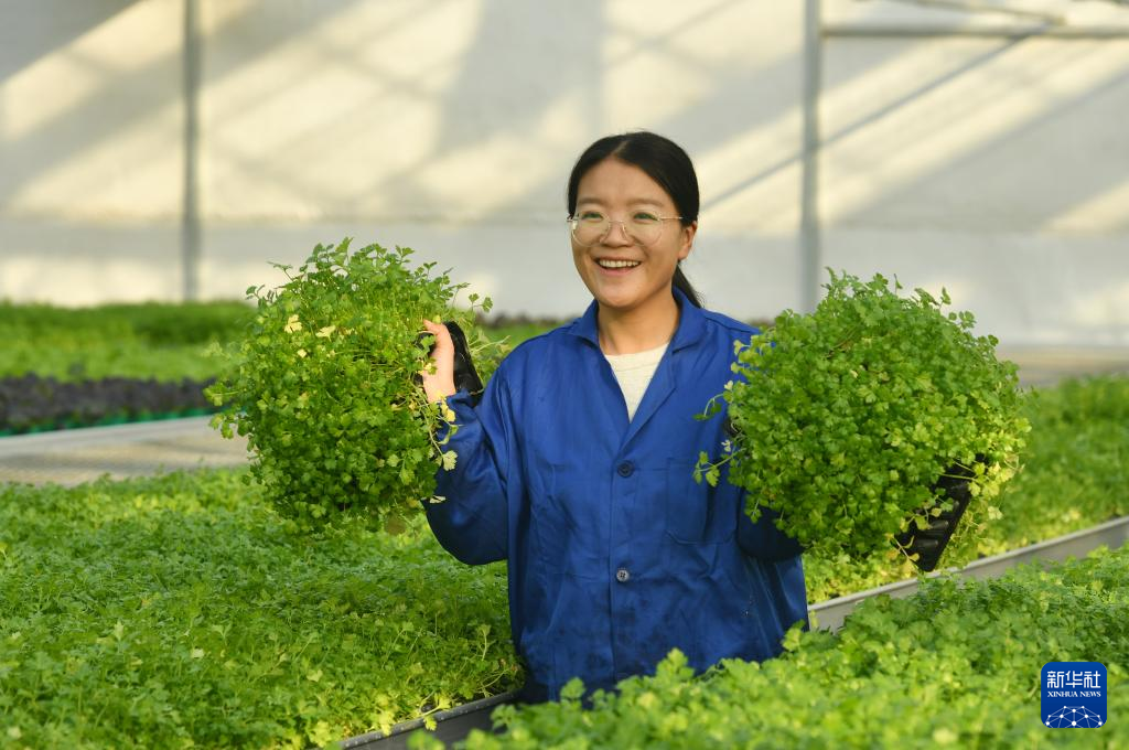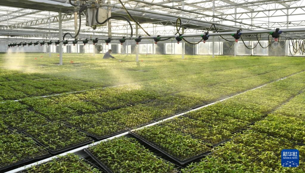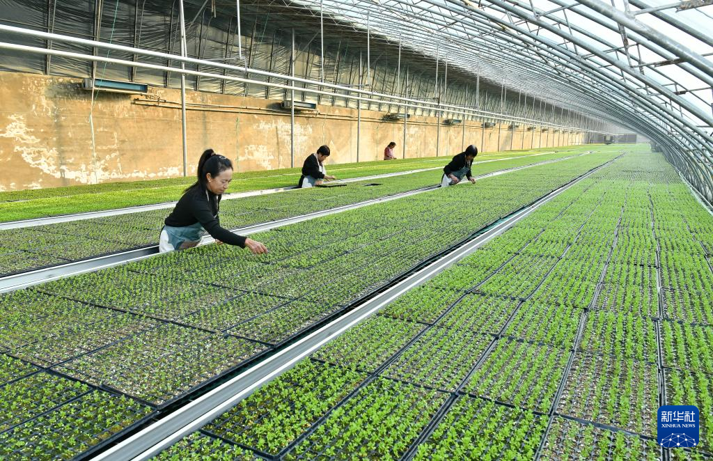1月18日,工作人员在肃宁县领头雁蔬菜种苗专业合作社给蔬菜种苗调盘。