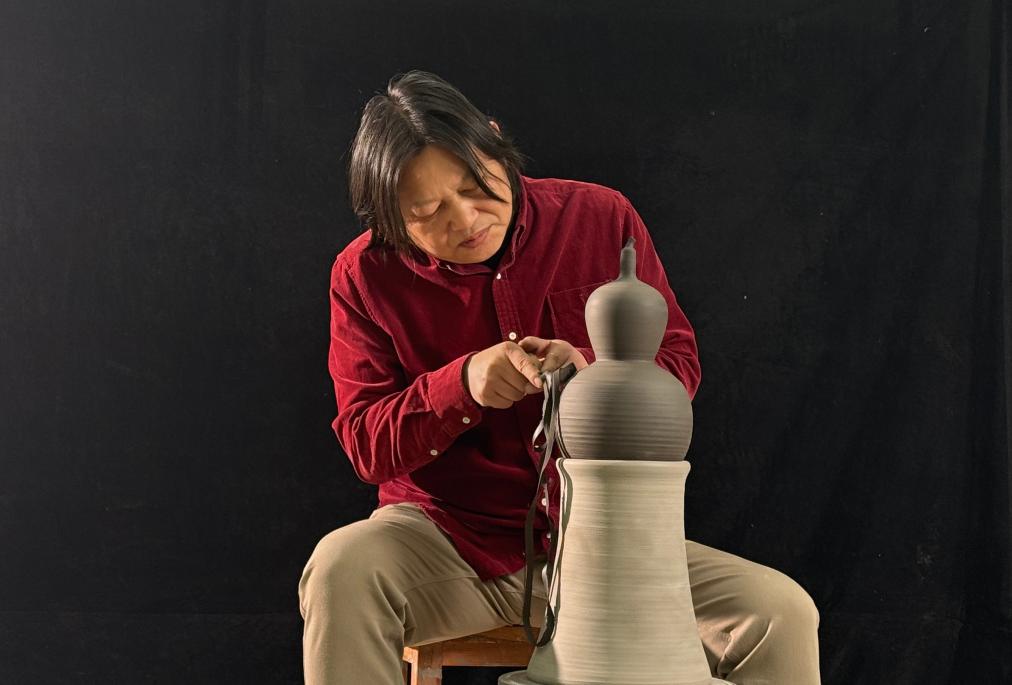 中国工艺美术大师庞永辉制作生肖贺岁瓷器。(受访者供图)