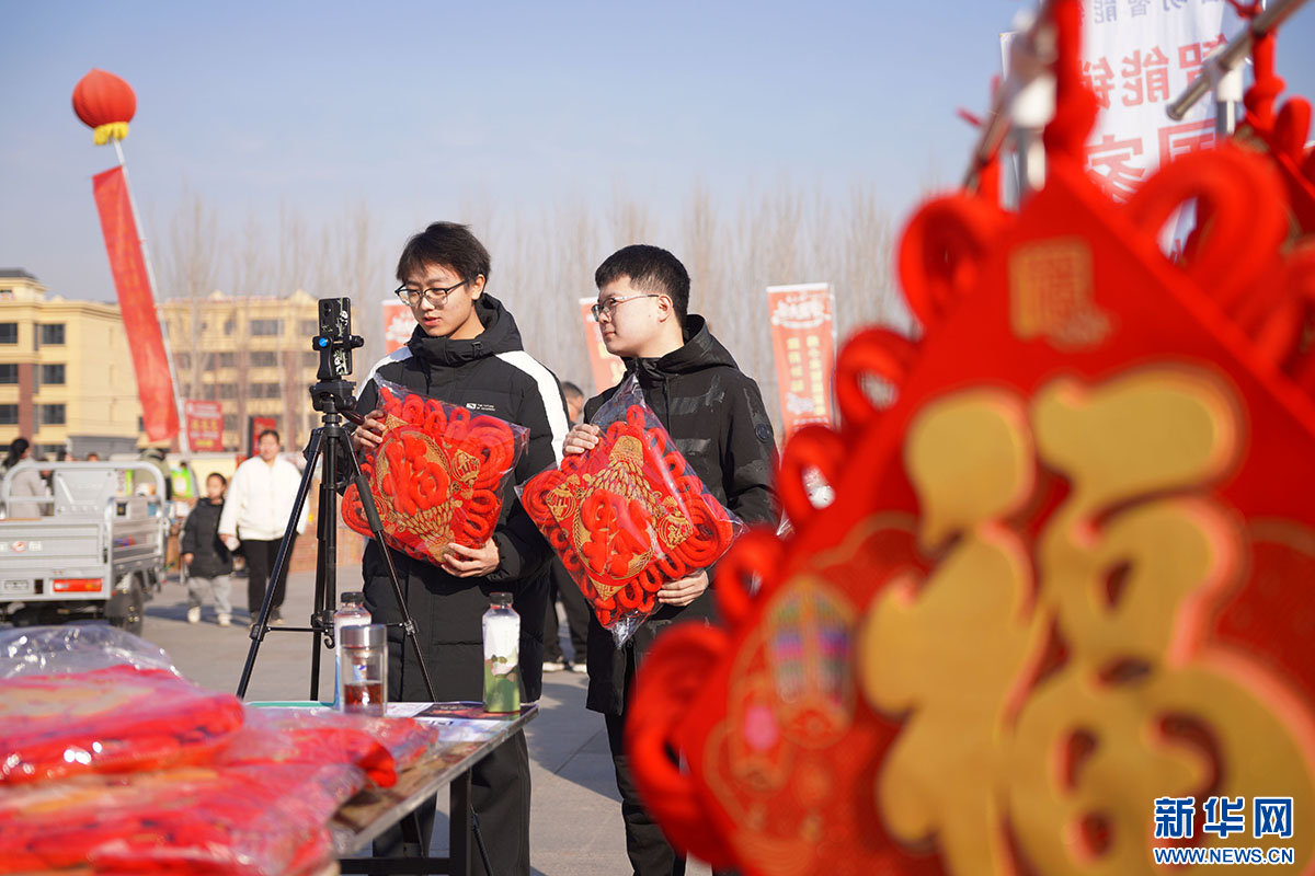 商家在年货大集上直播推介年货产品。新华网发 刘继东 摄