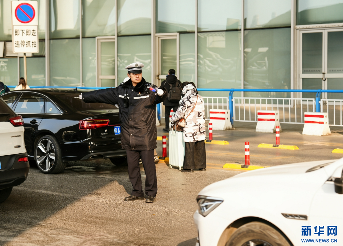 石家庄铁路公安处交通管理支队执勤民警在石家庄站落客平台疏导交通。新华网发 陈增凯 摄