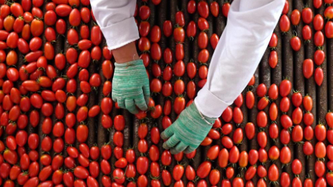 茶话会结束,记者又来到分拣车间,只见机器运转沙沙作响,村民们紧张忙碌,对刚采摘的樱桃西红柿进行清洗、去杂、色选、分级、速冻,再装入冷库发往全国各地,供应春节市场。