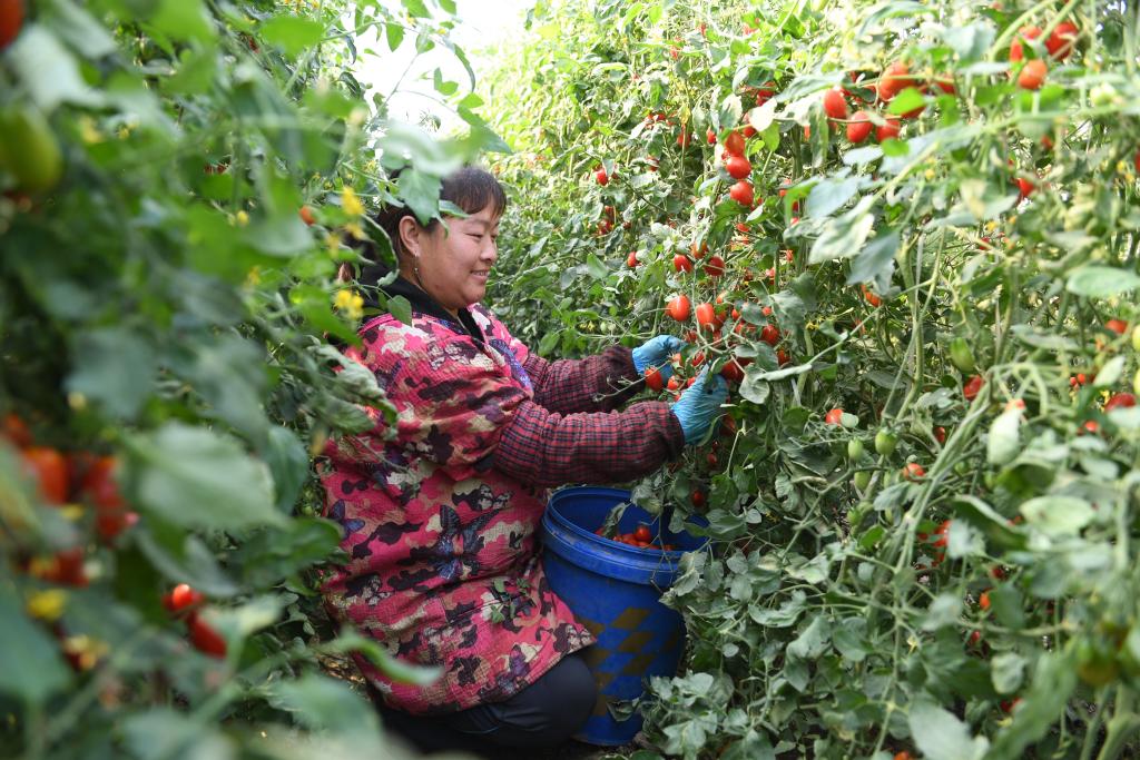 阜城县阜城镇张常巷村大棚里,村民在采摘樱桃西红柿。新华社发(崔贤飞 摄)