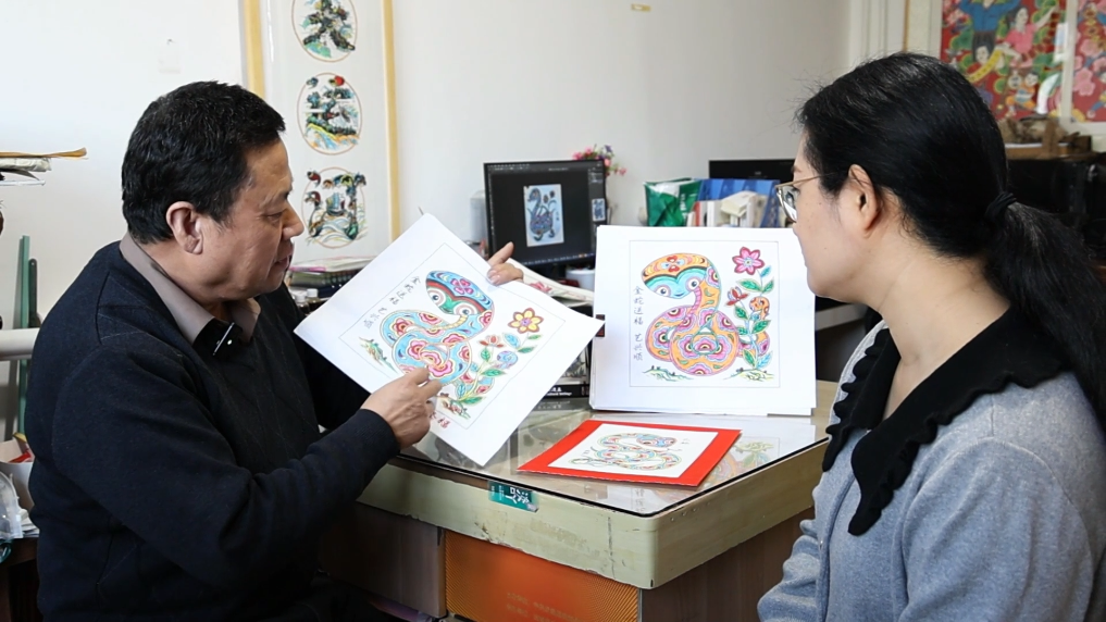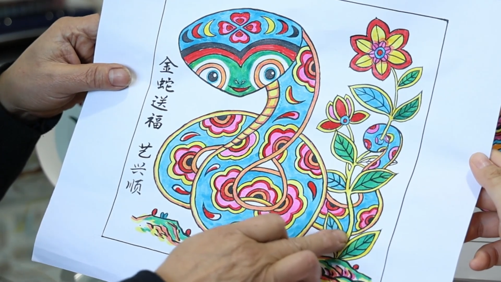 记者在他的工作室看到,画稿中的这些生肖蛇或顽皮,或可爱,丰富多彩的民间传统艺术元素表达了祈福迎祥的美好寓意。蛇年新春,一起来欣赏这些富有创意的武强年画作品,听听他的创作心得吧。