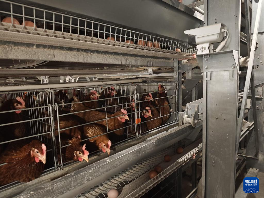 鸡舍巡检机器人检查鸡的活动情况。新华社记者董笑坤 摄
