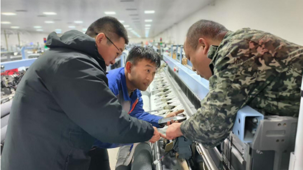 近两年来,鸿泽纺织投资3600多万元进行了大规模技术改造,设备更新,工艺创新,管理创新,企业面貌焕然一新,质量效益跃上一层。在2023年该公司新装90台国产喷气织机基础上,2024年,鸿泽纺织又新装90台国产喷气织机。目前,更新后的180台国内最新型喷气织机效率均保持在98%以上,产量较更新设备前翻了一倍,质量效益大大提高。