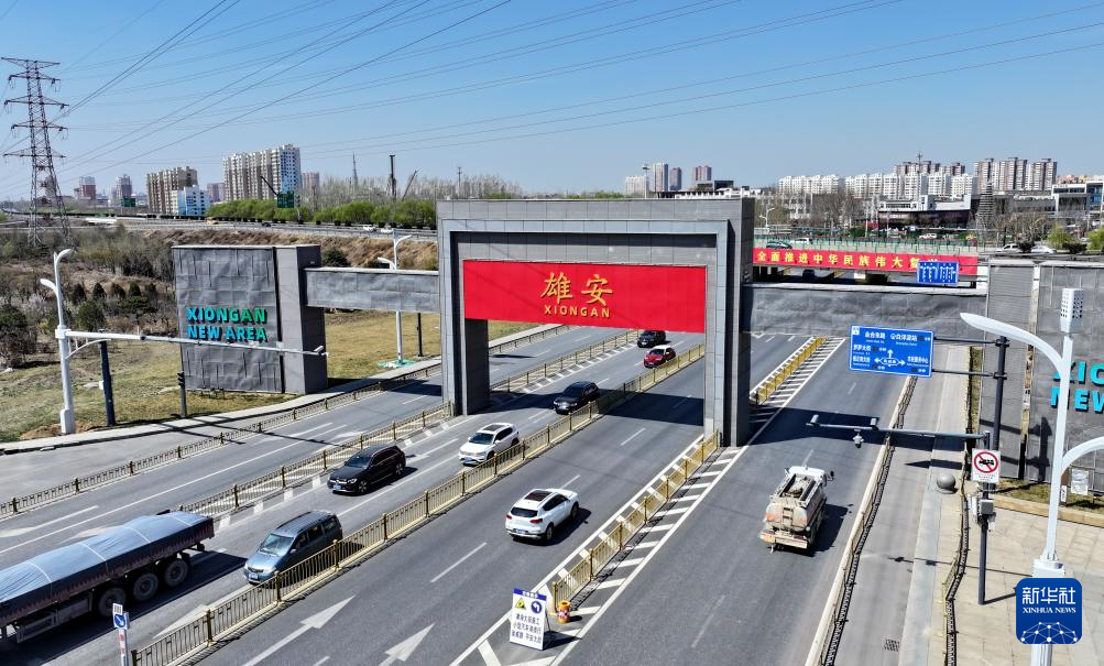 这是雄安新区雄安门(2024年3月30日摄,无人机照片)。新华社记者 牟宇 摄