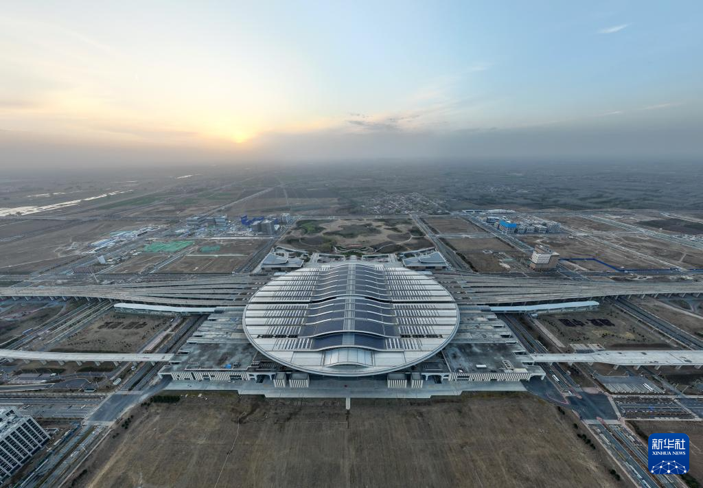 2025年2月26日拍摄的北京城市副中心站综合交通枢纽工程和“京帆”屋盖。新华社记者 鞠焕宗 摄