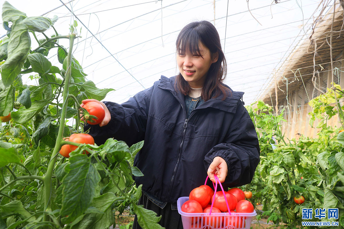 市民在采摘成熟的番茄。新华网发 田优 摄