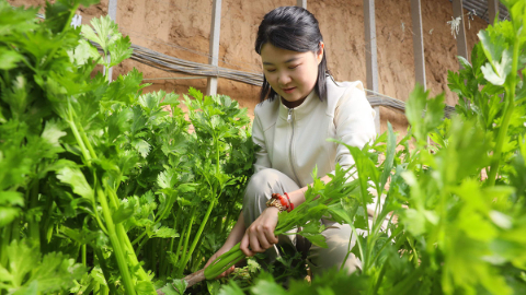 市民在采收成熟的芹菜。新华网发 田优 摄