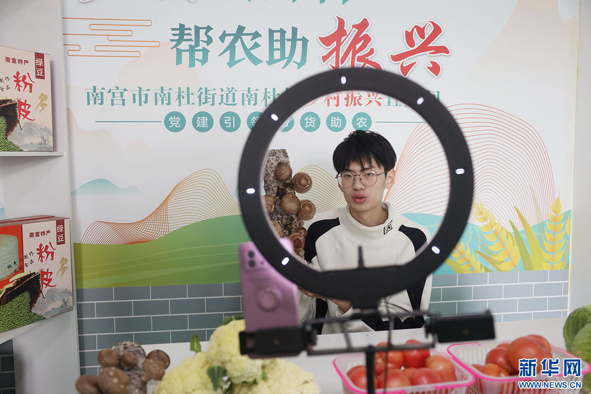 工作人员在直播间内销售农产品。新华网发 王林 摄