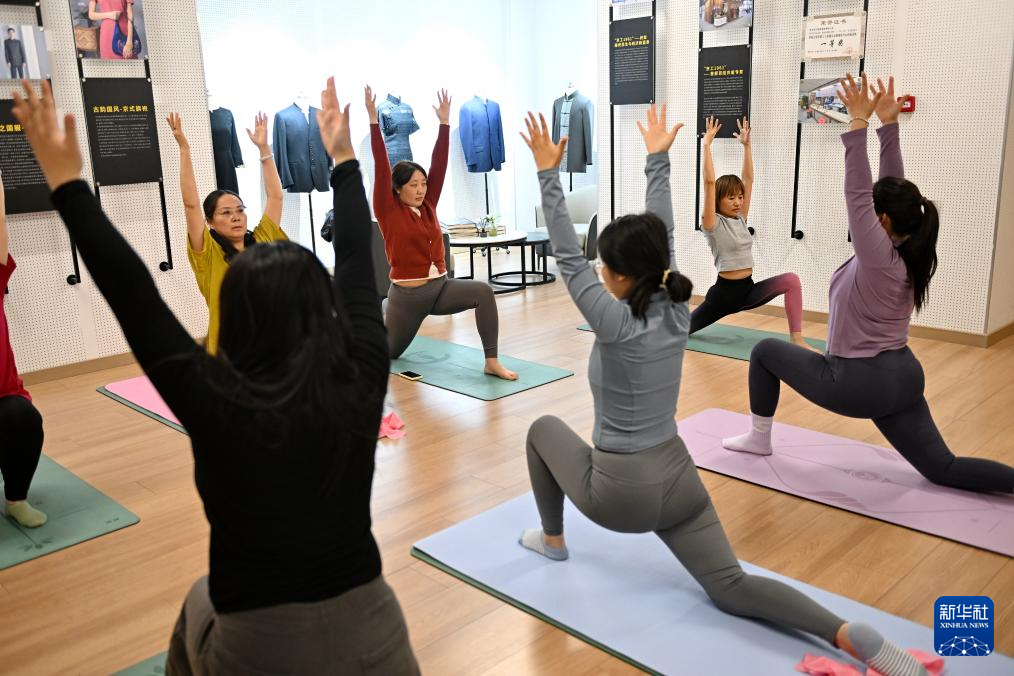 3月13日,雄安新区容东片区一处新市民夜校的学员在练习瑜伽。新华社记者 牟宇 摄
