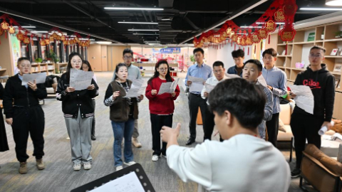 3月19日,雄安新区青年夜校的学员在练习合唱。新华社记者 牟宇 摄